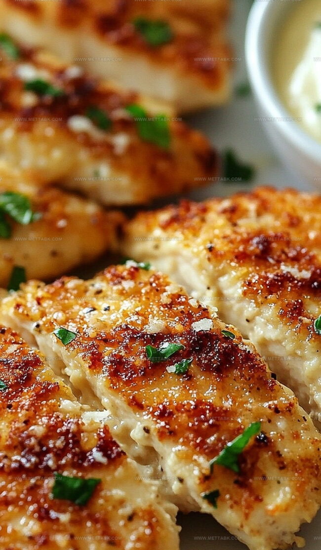 - Craft a zesty coating by blending panko breadcrumbs, Parmesan cheese, salt, and pepper in one bowl, while whisking mayonnaise and garlic together in another.