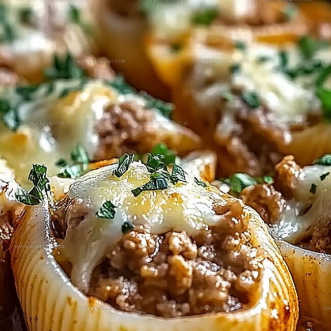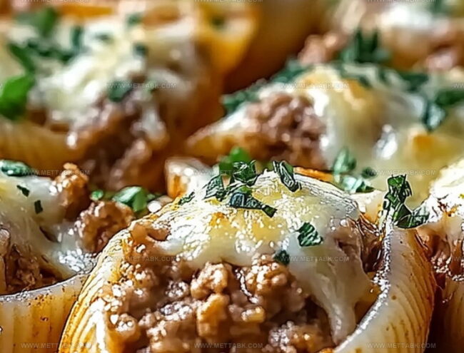 Comforting beef-stuffed shells with creamy ricotta filling bring Italian-American cuisine to your dinner table. Melted cheese, rich meat, and delicate pasta create a hearty meal that satisfies with each savory bite you’ll enjoy.
