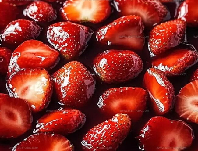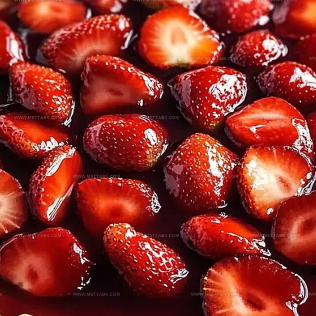 The combination of sugar, cornstarch, water, and strawberry jelly creates a glossy, sweet coating that binds the fresh strawberries together and gives the pie a professional, restaurant-quality finish.