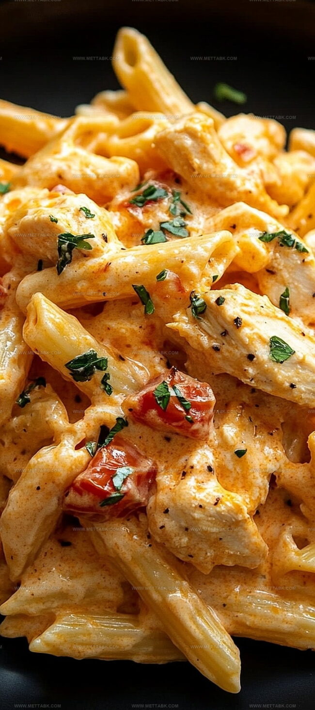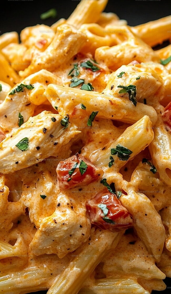 - Reintroduce cooked chicken and drained pasta to the skillet, thoroughly coating with sauce. Adjust sauce viscosity by incrementally adding reserved pasta water if needed.