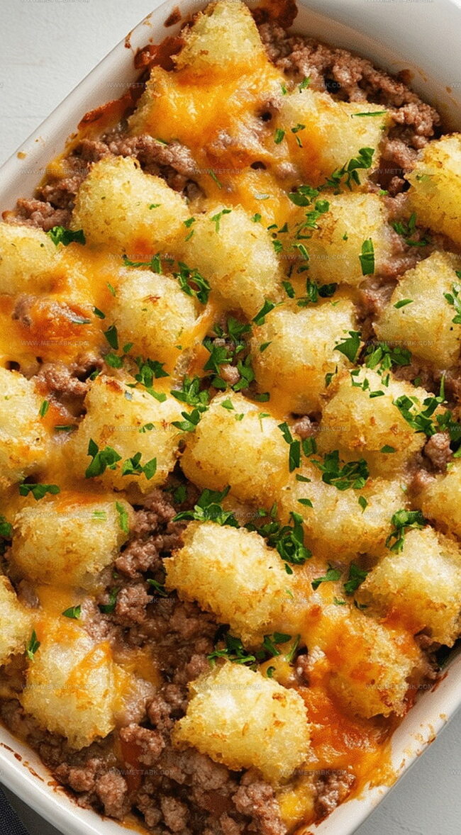 This tater tot casserole combines crispy potato tots with a creamy beef mixture, creating a comforting one-dish meal that’s both hearty and easy to prepare.