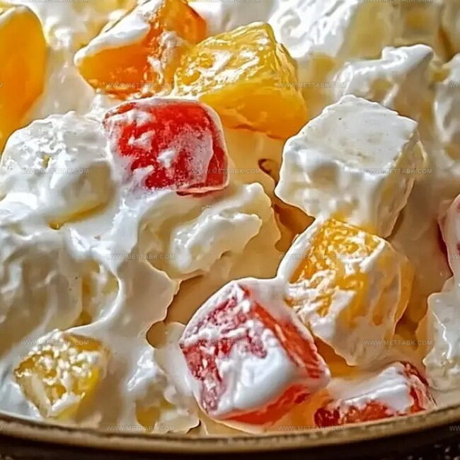 Soft, pillowy marshmallows nestle between fruity jewels, promising a refreshing escape from ordinary desserts.