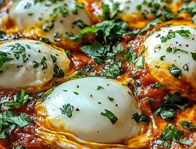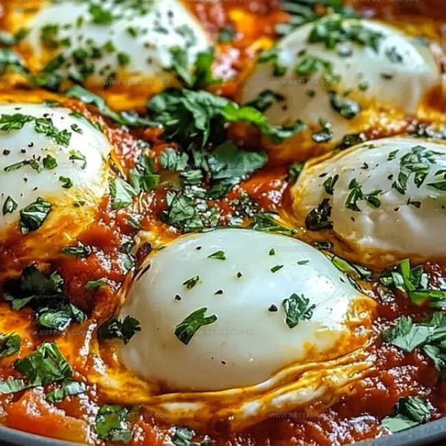 Nested eggs swim in a spicy tomato sauce that tells stories of culinary traditions.