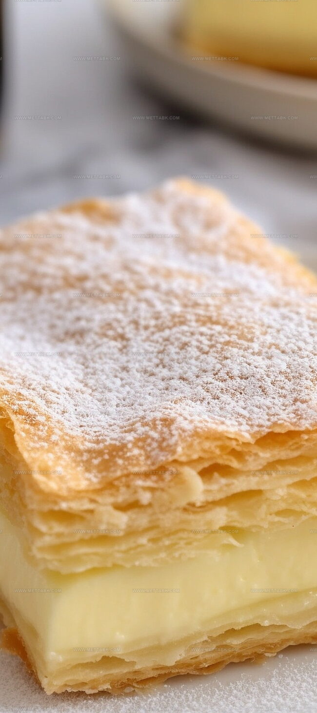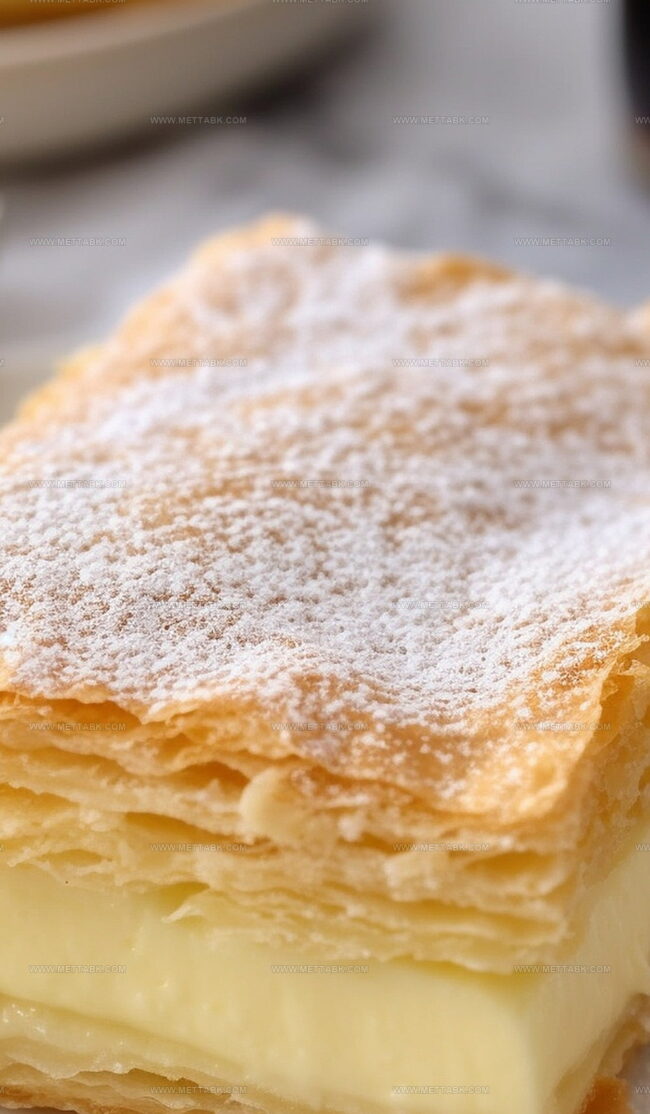 Sweet layers of creamy custard nestled between crisp pastry sheets create a nostalgic treat.