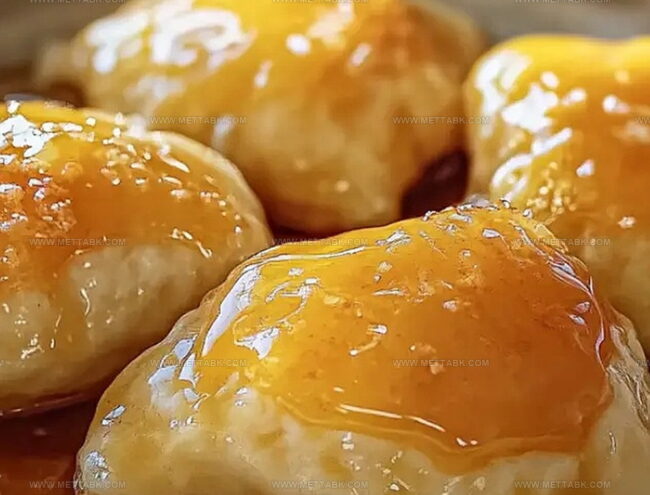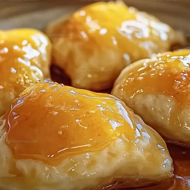 - Drizzle the sweet mixture evenly across the top of the dumplings, allowing it to cascade between the pastry pockets.