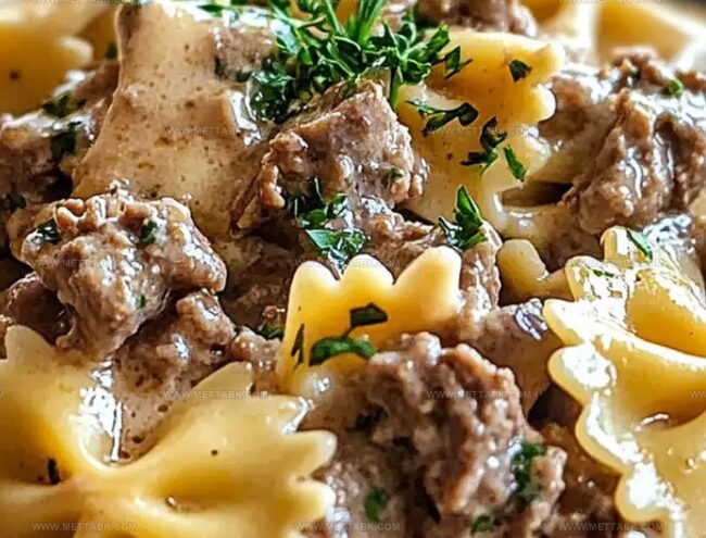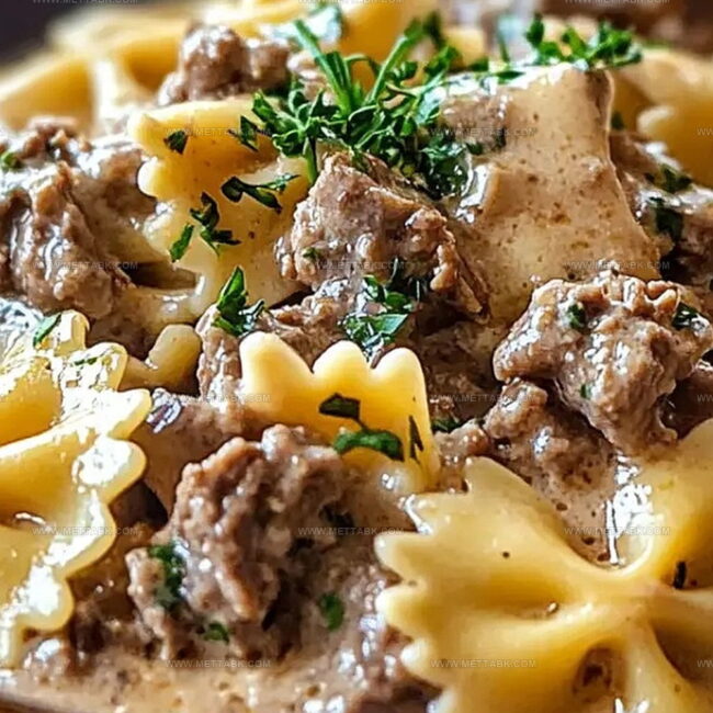 Culinary magic happens when creamy beef and bowtie pasta collide in a symphony of flavors that dance across your plate.