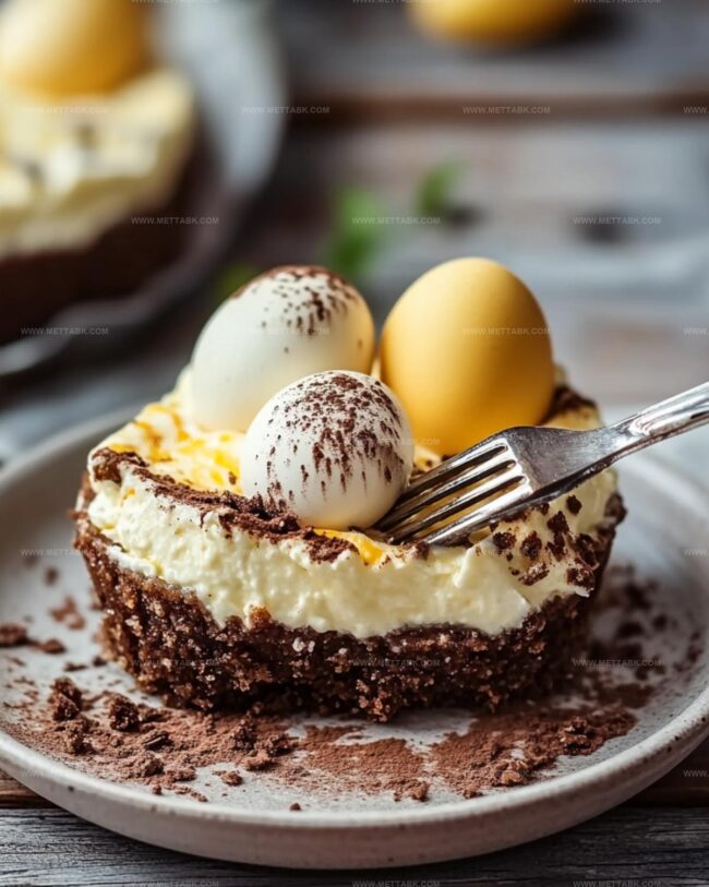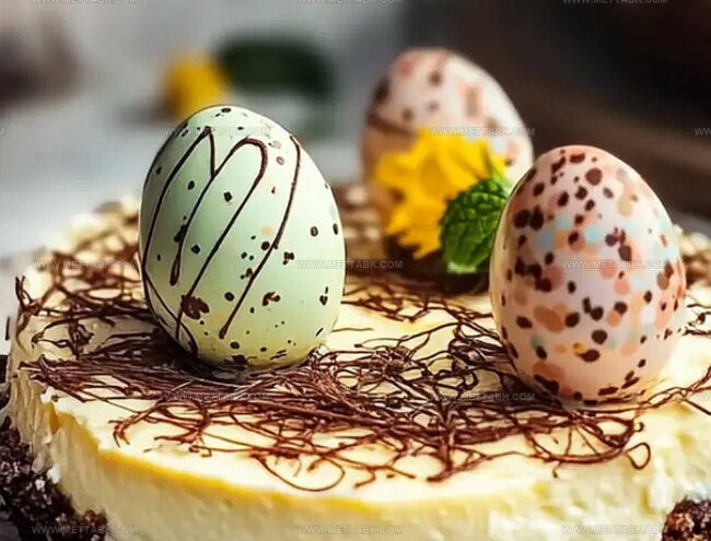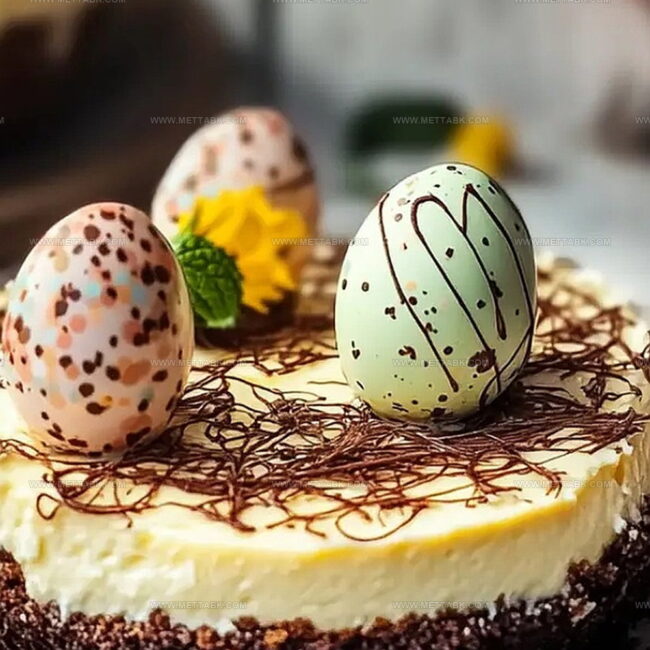 Indulgent Easter Egg Cheesecake delights with creamy layers of chocolate and smooth cream cheese, nestled in a graham cracker crust. Sweet chocolate eggs crown this festive dessert, promising pure bliss with each heavenly bite you’ll savor.