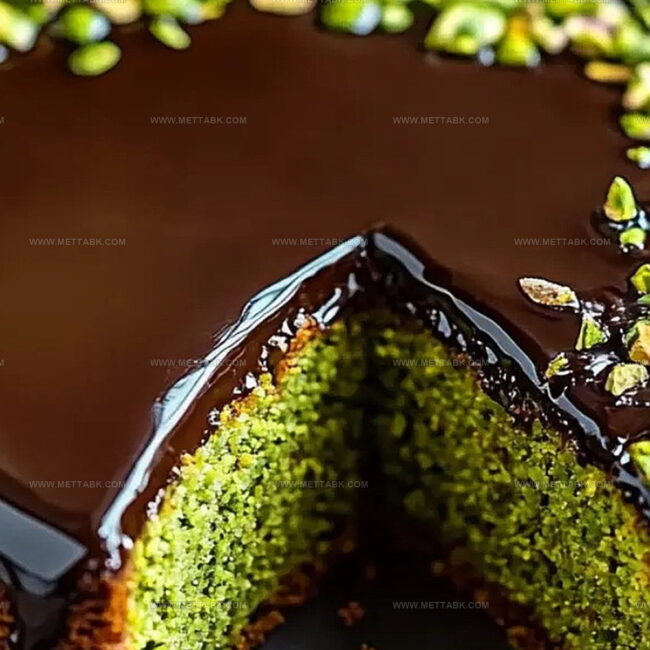 Creamy pistachio cake melts hearts with its rich, nutty essence and luxurious chocolate ganache drizzle. Elegant Mediterranean flavors dance through each silky slice, inviting you to savor pure culinary bliss.