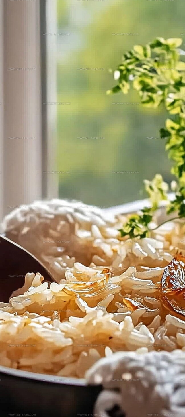 Sprinkle fresh parsley on top for a burst of color and freshness. Serve steaming hot and enjoy your comforting French-inspired rice dish.