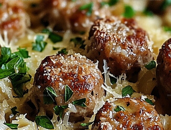 Succulent garlic butter sausage bites dance alongside crispy parmesan-coated pasta in this irresistible Italian-inspired comfort dish. Quick weeknight magic emerges when savory sausage meets buttery garlic, promising delicious satisfaction for hungry diners.