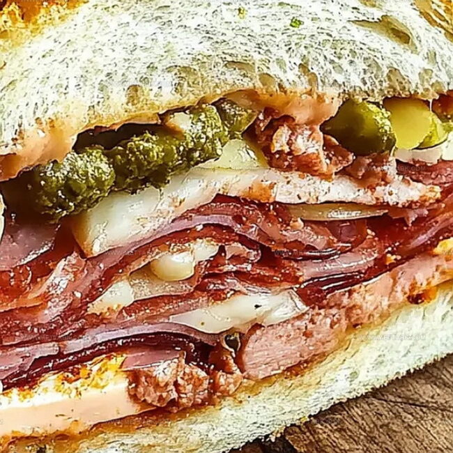 Layered with rich Italian meats and zesty olive salad, this Giant Muffaletta sandwich delivers New Orleans culinary magic on a single plate. Hearty flavors and bold ingredients create a mouthwatering experience you’ll savor from first bite to last.