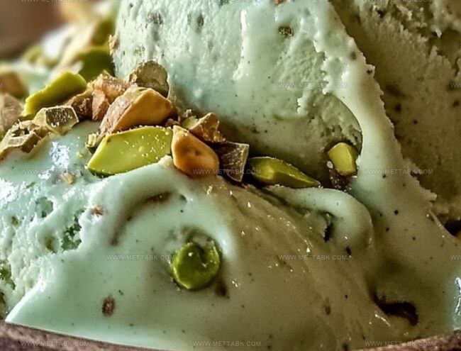 Creamy pistachio ice cream delights with rich, nutty flavors packed with protein power. Smooth Mediterranean-inspired dessert provides cool comfort and satisfying nutrition for health-conscious taste buds.