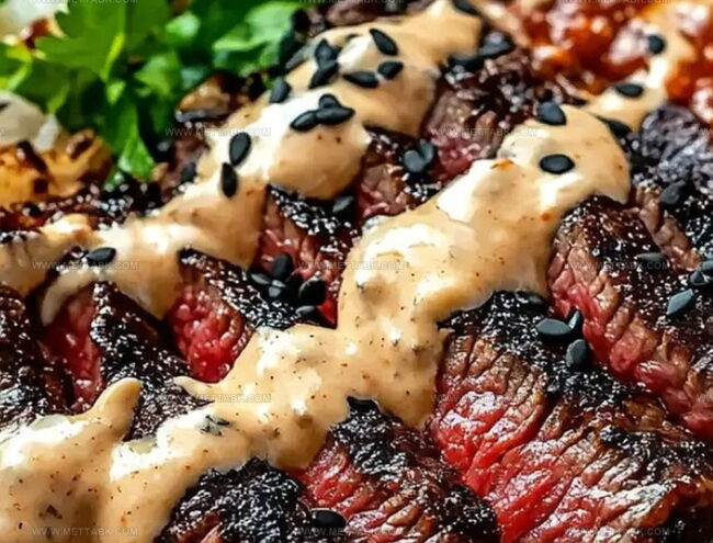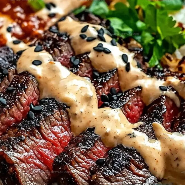 - Generously drizzle the spicy cream sauce over the steak, creating an enticing visual and flavor profile. Serve immediately to enjoy maximum temperature and taste integrity.