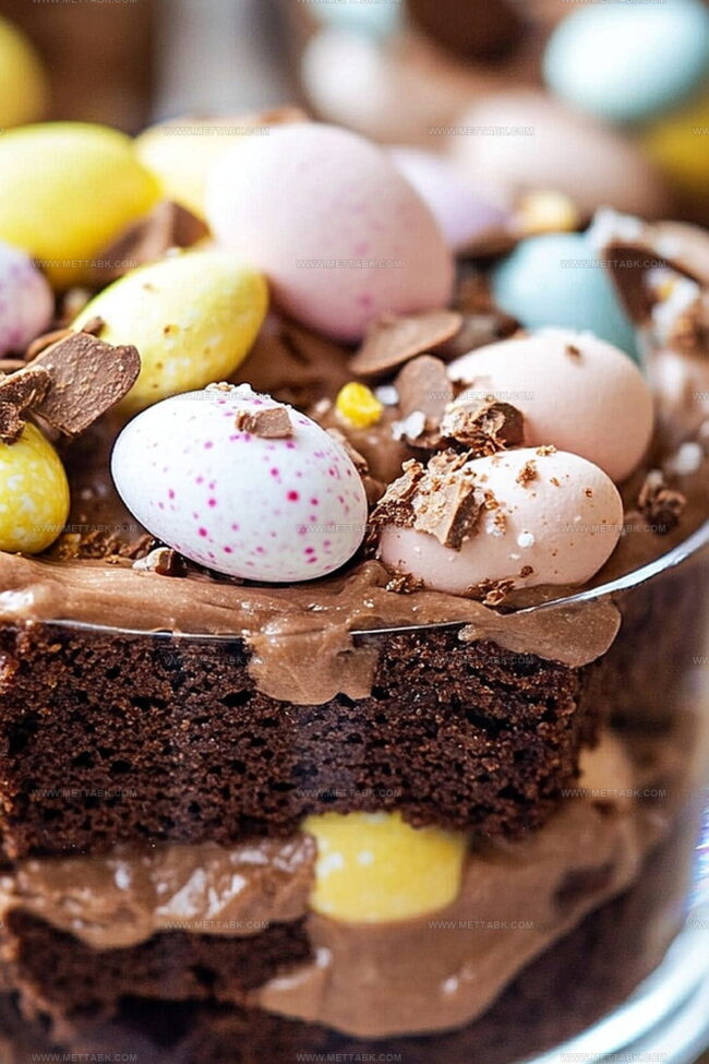Creamy chocolate mini eggs easter brownie parfaits dance between decadent layers of indulgence and festive charm.