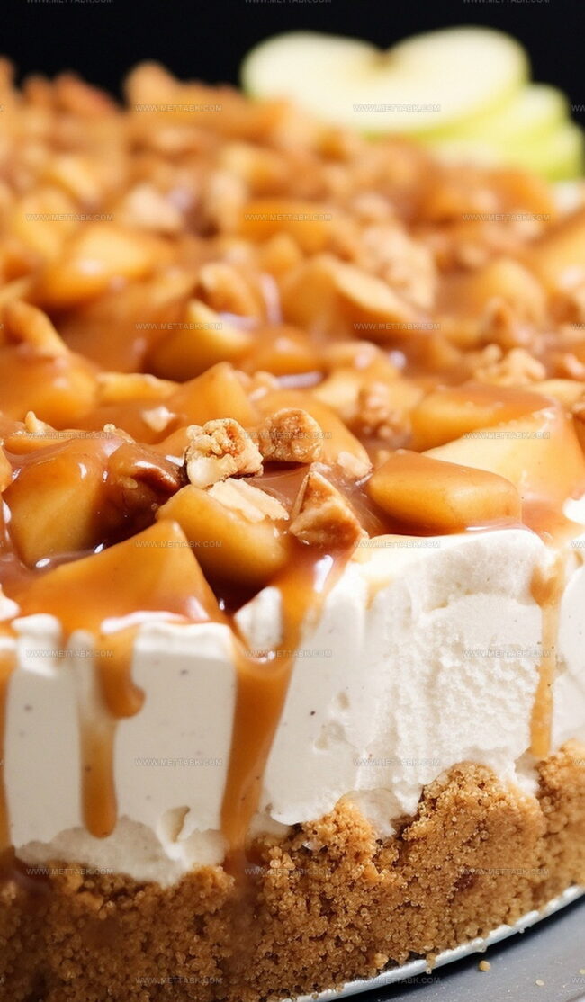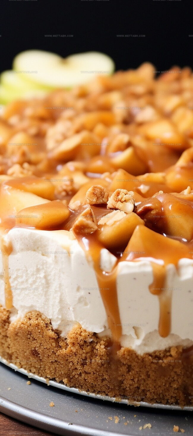 Refrigerate the cheesecake for at least 4 hours or overnight. Before serving, top with:Slice and enjoy this decadent dessert that combines creamy cheesecake with spiced apple goodness and rich caramel.