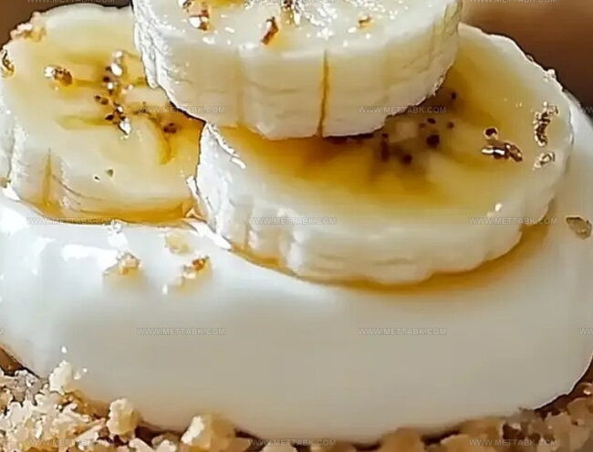 - Complete the dessert by artfully arranging fresh banana slices and drizzling a golden stream of honey across the surface for a final touch of sweetness.