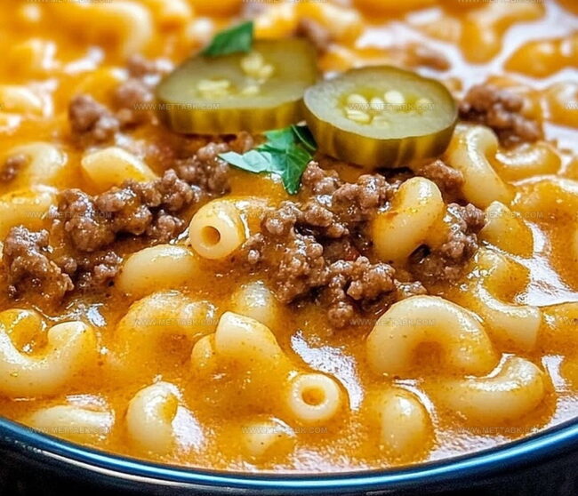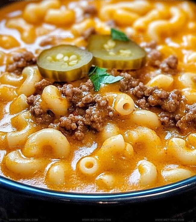 Comforting one-pot macaroni cheeseburger soup delivers classic American diner flavors in a single hearty dish. Creamy, meaty, and packed with cheesy goodness, this soup brings quick satisfaction to hungry diners seeking a nostalgic meal.