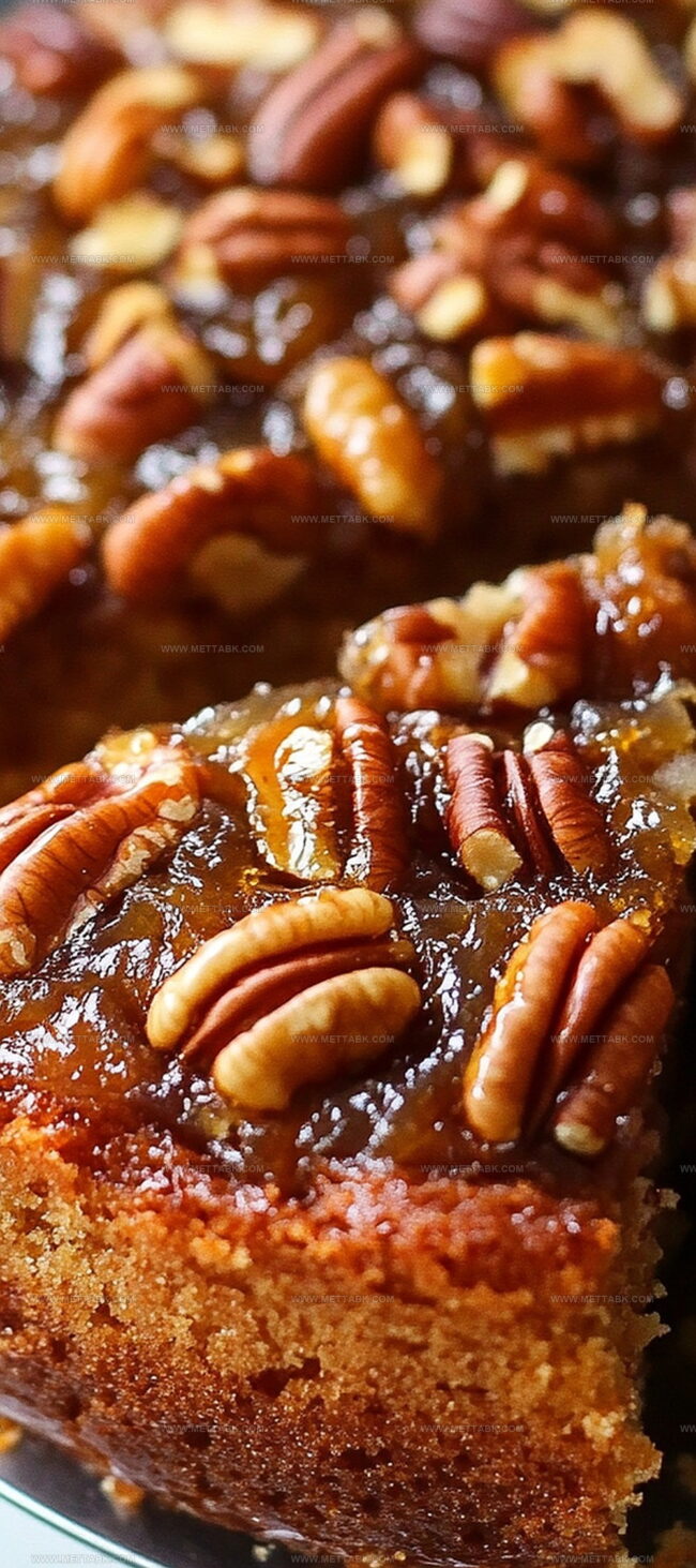 - Serve the cake warm or at room temperature, showcasing the beautifully caramelized pecan topping.