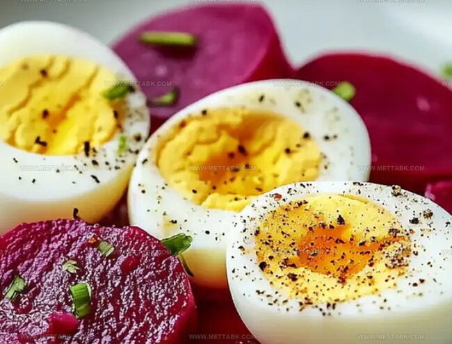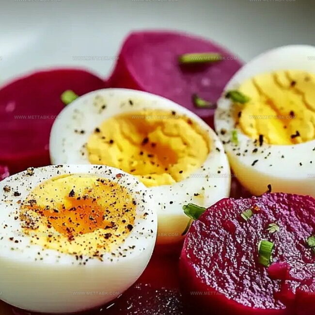Vibrant pickled eggs with beets dance with tangy, jewel-toned brilliance across your plate.