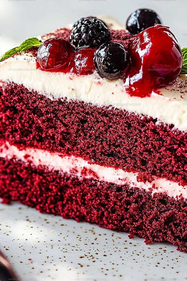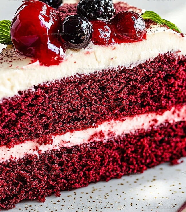 Crimson layers whisper stories of classic dessert traditions.