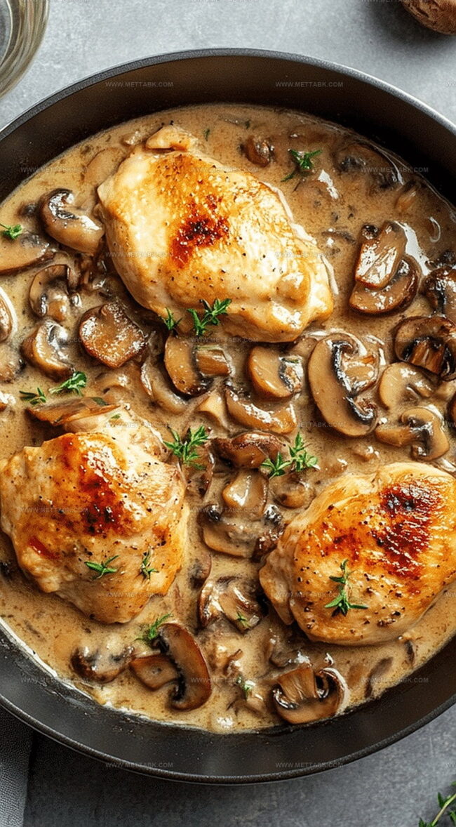 Skillet chicken and mushroom wine sauce brings classic French flavors to home kitchens with elegant simplicity. Rich pan-seared chicken nestles in a silky white wine reduction that promises restaurant-quality dining right at home.