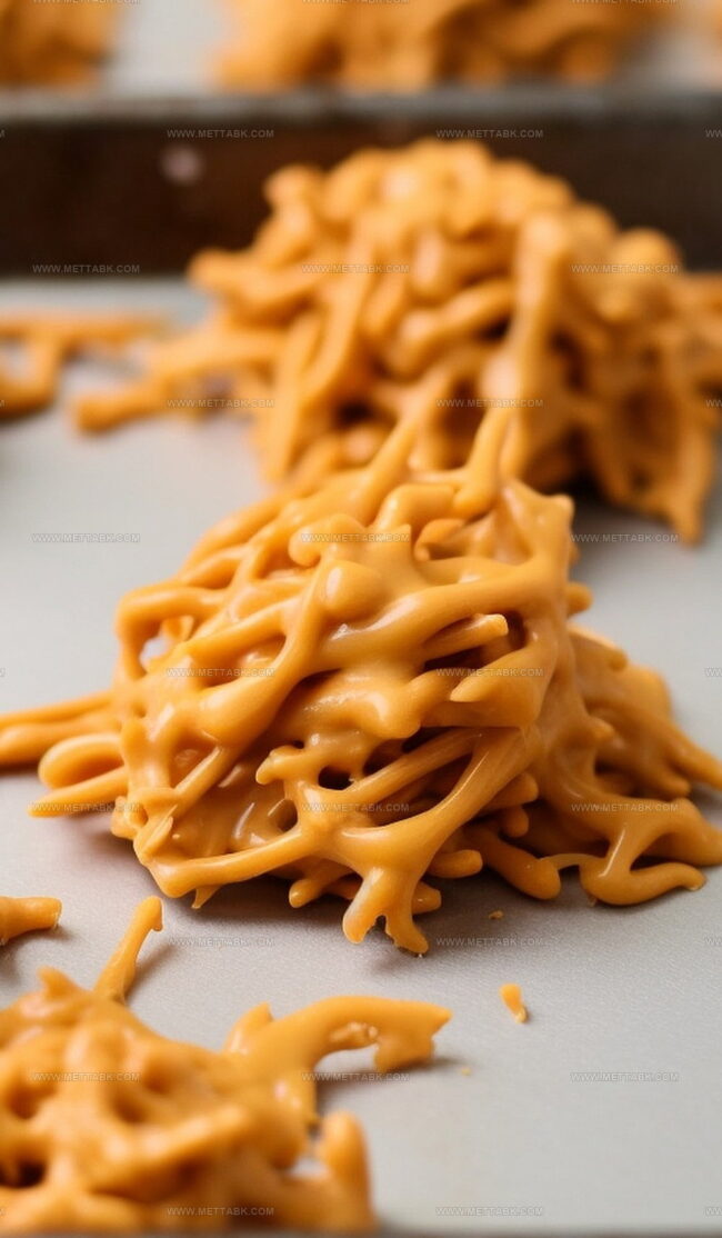 Use two forks to drop small clusters onto the prepared baking sheet. Make sure each noodle gets a delicious butterscotch coating.