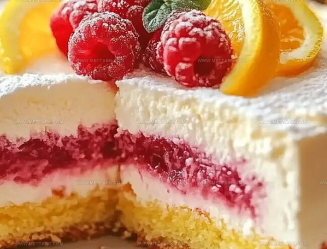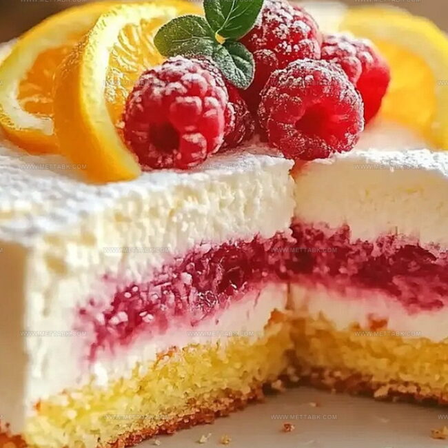 Delightful spring cheesecake cake blends zesty citrus and sweet raspberries into a creamy, refreshing dessert. Layers of lemon-orange sponge and silky cheesecake promise a sophisticated treat that will transport you to sunny Mediterranean gardens.