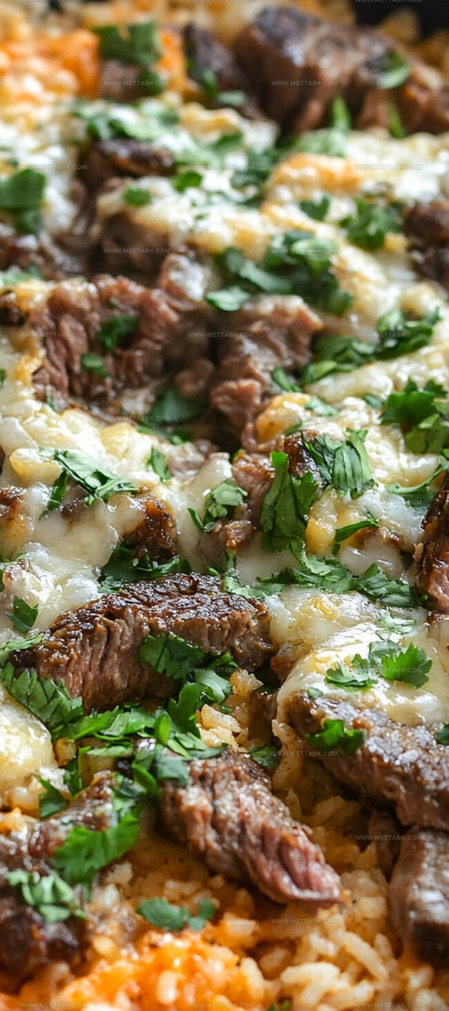 Sizzling Tex-Mex steak & queso rice brings bold southwestern flavors to your dinner table. Melted cheese, tender beef, and spicy seasonings create a satisfying meal that delivers comfort and excitement in each hearty bite.