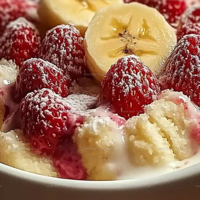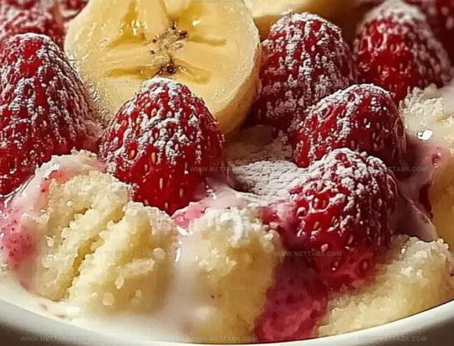 Soft banana slices mingle with luscious strawberries, creating a symphony of fresh ingredients.