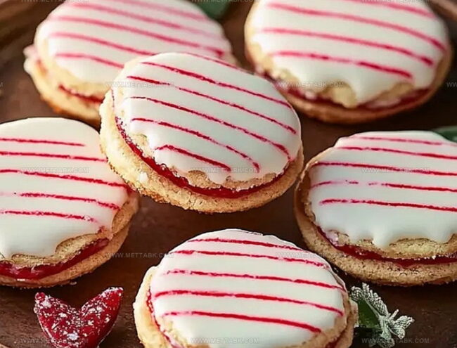Striped peppermint sandwich cookies bring festive cheer with classic holiday charm. Creamy peppermint filling nestled between delicate chocolate cookies creates a delightful treat you cannot resist.