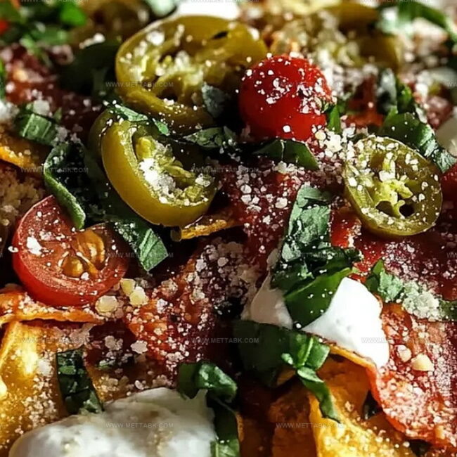 Crispy tortilla chips loaded with savory italian nachos create a mouthwatering fusion that blends two culinary worlds.