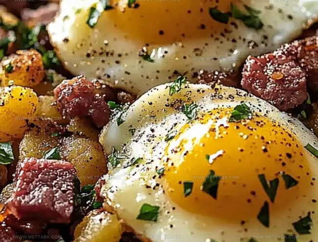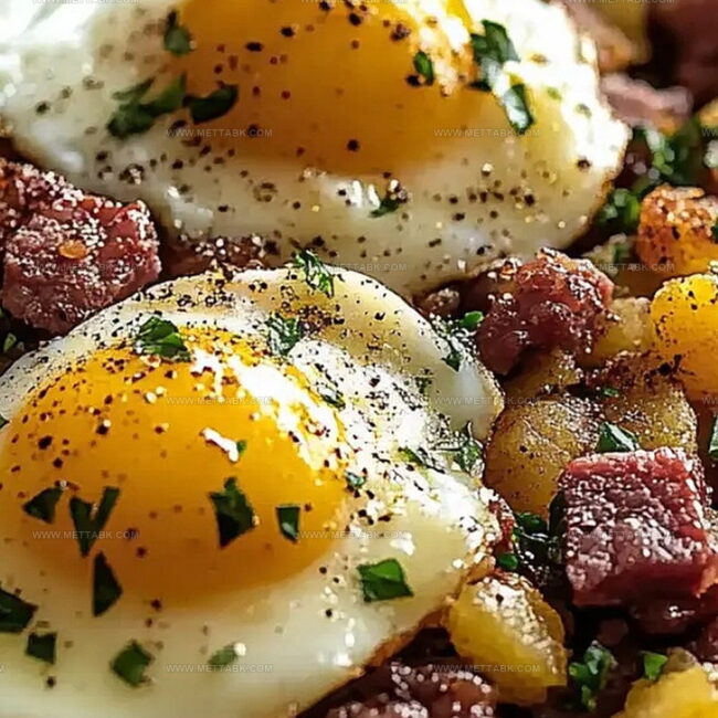 Hearty corned beef hash & eggs bring nostalgic diner comfort straight to your kitchen. Crispy potatoes, tender beef, and perfectly runny eggs create a satisfying breakfast that connects home cooks with classic American morning traditions.